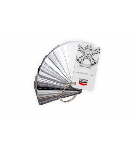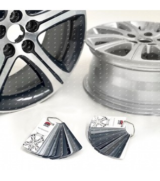 nuancier rassemblant 70 couleurs, brillantes et mates, qui correspondent aux couleurs les plus répandues sur les jantes